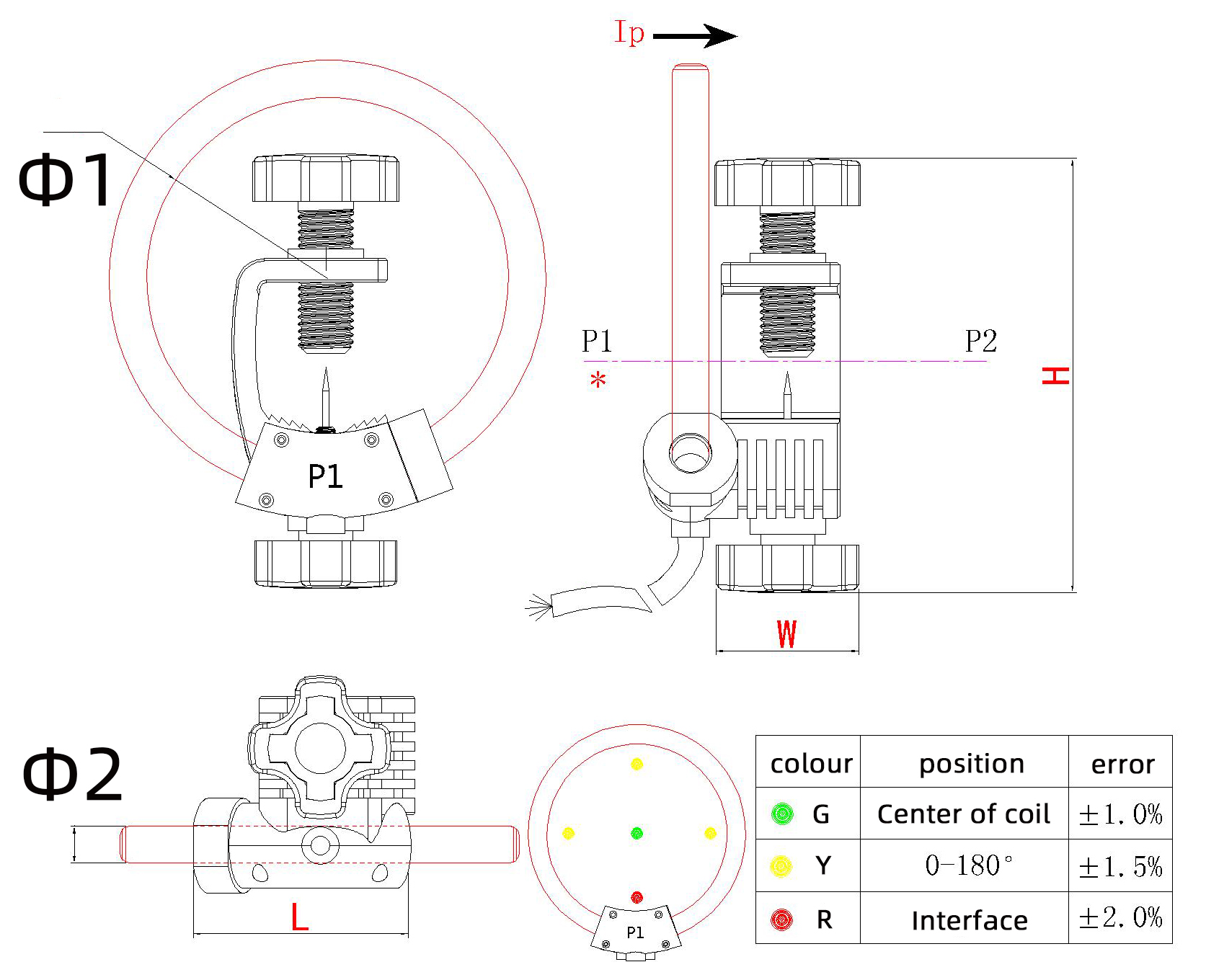 Φ1 | Φ2 | L | W | H | ||||