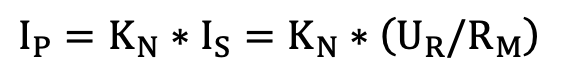 Midiendo la corriente de prueba IS que fluye a través de Rm, o el voltaje UR en ambos extremos de Rm, se puede obtener la corriente lateral IP original: